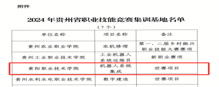 为进一步适应新质生产力发展要求,培养新质拔尖技术人才,装备制造分院紧紧围绕贵州装备制造产业“智改数转”对人才提出的新要求,始终聚能“五金”基建,不断筑牢育人基石,把金专业、金课程、金教师、金基地和金教材建设作为提高人才培养质量的总抓手,重点突出产教融合基地建设,不断深化校企合作,装备制造分院紧扣产业结构调整的需求。在建设“金基地”上下工夫,把校内基地建设与实训内容、职业能力、技能水平相结合,着力建设具有生产性特征,又能满足实训教学、竞赛承办、赛前集训等符合行业标准的实习实训基地,近日,装备制造分院“机器人系统集成”赛项顺利通过了贵州省人力资源和社会保障厅的认定,成功入选2024年贵州省职业技能竞赛集训基地。至此,装备制造分院的省级赛项集训基地由“电工”、“工业控制”两个增加至三个,实训基地建设得到进一步夯实。